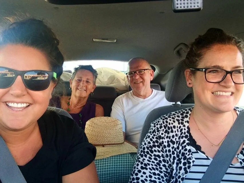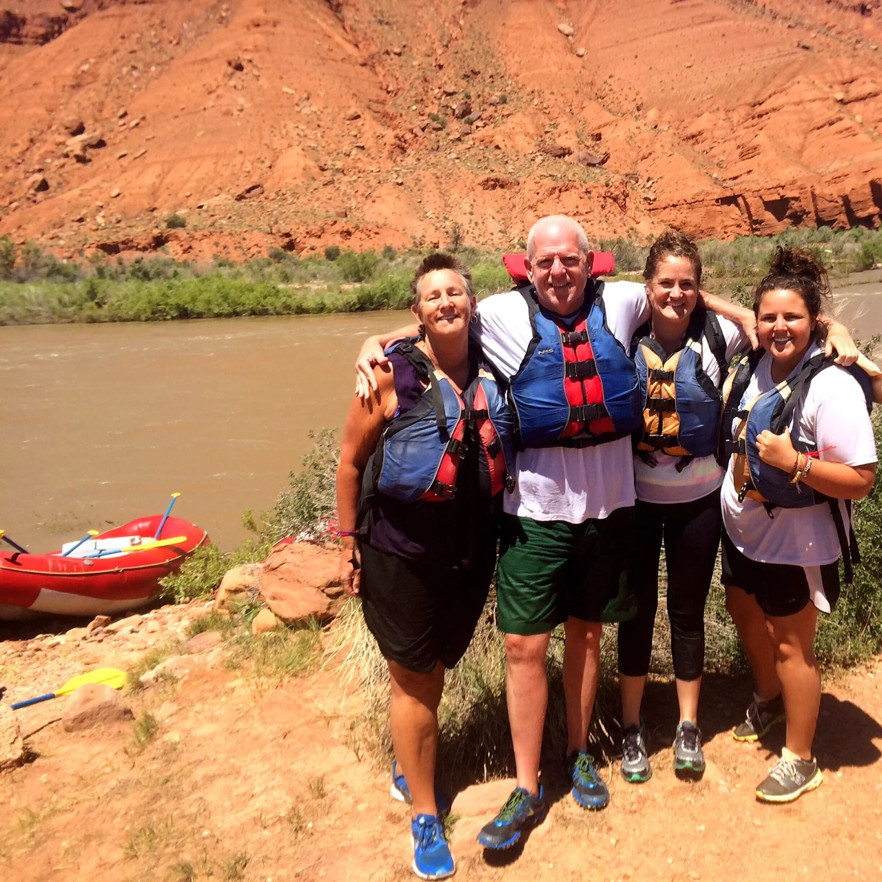 We approach one of the more technical sections. Our guide says he tipped his kayak here just last week when out solo. Oh, dear. Everything happens so fast. We hit a rapid, the raft tips. I’m sitting on the submerged edge and get bumped out. My mom, sister, and dad fall, too. The boat does not capsize and the guide is able to pull my dad back in the boat. My mom, sister, and I are adrift with more rapids to navigate ahead. I see the terror on their little bobbing faces. I feel guilty for making us do this, guilty for not being able to help them. I cannot even help myself. I’m heading for a particularly scary rapid, swirling and churning white caps. I take a deep breath, release the grip on my oar (technically not advisable), and go under. I’m wearing a life jacket. I don’t fight. I’m pushed around, as if diving under a big wave while swimming in the ocean. When I pop up, I am beyond the rapids. I made it through. I am exhausted, and use all my remaining energy to swim to another boat in our fleet. The guide pulls me in. I sit in the back, with my legs hanging over the edge, while this boat takes me down the river. I think I saw my sister and mom pulled into another boat, but I can’t be sure. The worst part is, the ride is not over. We find a quiet spot to stop and regroup. The four of us (mom and sister were rescued by another raft) have to get back in our boat and continue down the river to the half-day pickup location. There is one last set of rapids, which we fortunately get through, soaked and a little shell-shocked but otherwise unscathed. We unload and take a family photo. We force smiles, hiding terror, expressing an overwhelming sense of relief. I am grateful to be back on solid ground, grateful to be alive.