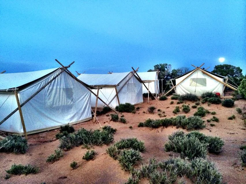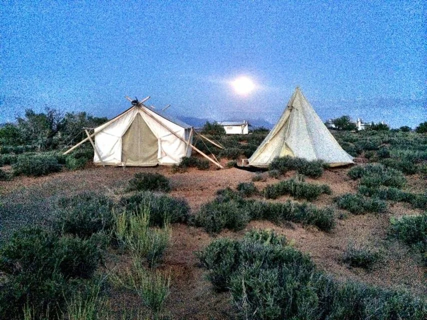 Night one accommodations are the modestly glamorous tents of Moab Under Canvas. Along North Highway 191, the unassuming white tents are easy to miss. If you’ve hit Arches National Park or downtown Moab, which we did, you have gone too far. For me, Moab Under Canvas is the best of both worlds: offering the opportunity to be nature-adjacent and then able to retreat to a warm tent and comfortable bed when it’s time to turn in. Our cozy tent had four twin beds lining the canvas walls. There was a dresser, mirror, and a couple battery-operated lamps. I believe the tents were also equipped with power-strips for charging your various electronic devices. Depending on the needs of your party, numerous tent configurations are available.
