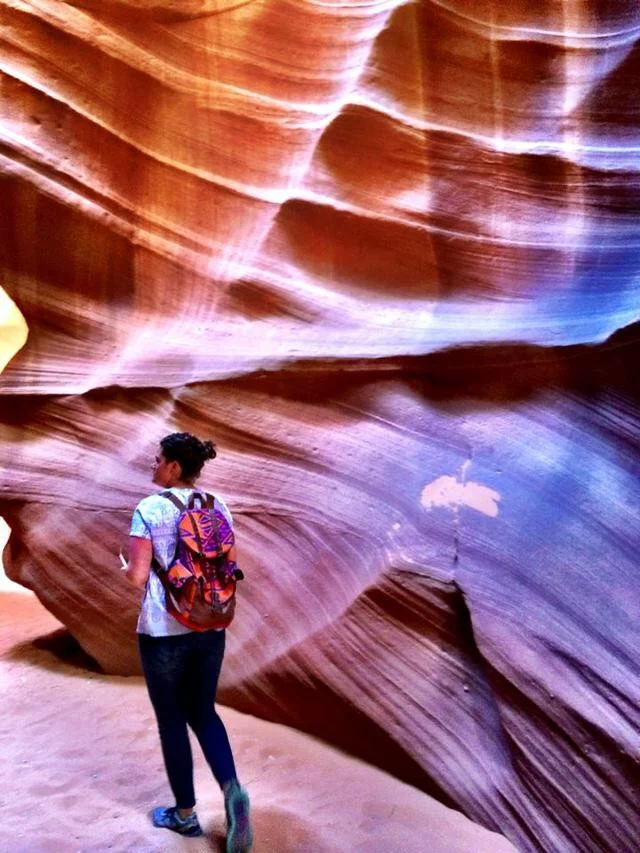The slot canyon is absolutely gorgeous. The canyons have been carved by years of erosion. The walls are sanded smooth, exposing all the layers and colors of sedimentary deposits over time. Tour groups of about fifteen people are constantly coming through the narrow path of the slot canyon. You have to hang back to get an unpopulated photo, finding the lull between groups. My sister and I were definitely the naughty kids in class, constantly being reprimanded by our brusque and impatient guide for not keeping up. There is no serious hiking or climbing involved, just an easy walk on a sandy, mostly level canyon floor.