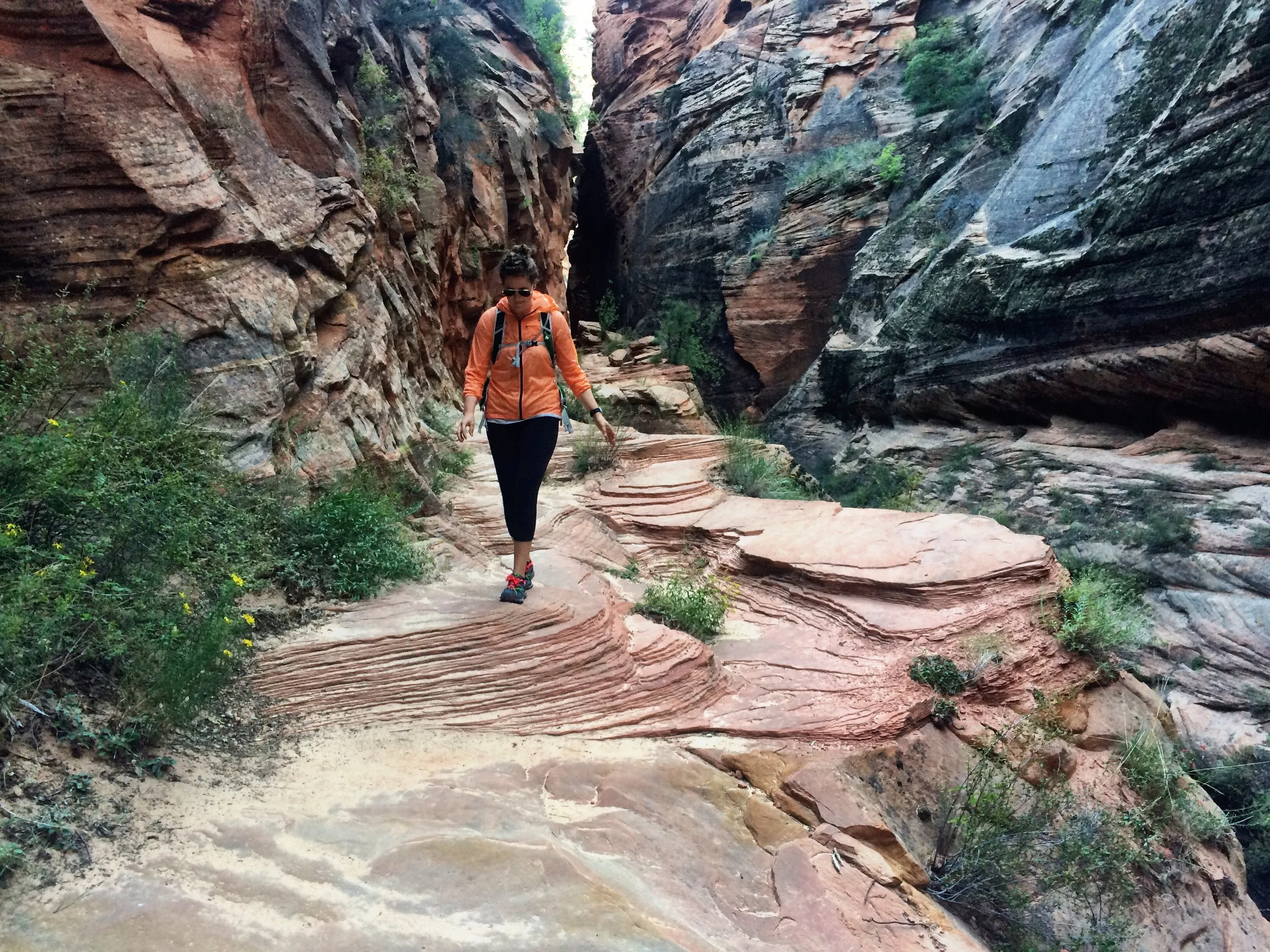 In a bit of blog magic, I am going to conflate two trips to Utah. I (once again with my other three family members) have since been to Zion in September 2015, and had the pleasure of tackling two of its other remarkable hikes. Zion is incredible. I love the vast scope and small scale. I love the aesthetic of orange and red oxidized mountains accented with greenery and brown gravel paved roads. It is a compact, bustling park with plenty to explore, including numerous hikes of varying degrees of difficulty. The most famous (as evidenced by the crowds that flock) are Angels Landing and The Narrows. I’m told the park and its surrounding topography resembles Cars Land at Disneyland. My brilliant dissertation-writing sister would call that phenomenon a simulacrum. The indefinable moment when the real thing calls to mind the fake thing and effectively reversing one’s mental free associations and replacing the bona fide with its falsified representation. So much of this trip reminds me of Disneyland, when in fact the “happiest place on earth” was modeled on these actual places. The La Quinta in Springdale was so good to us the first time around, we stay there once more.